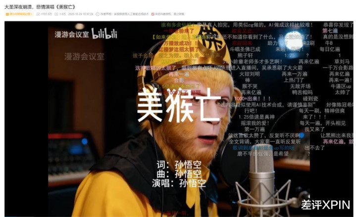 像 B 站上这首《好意思猴一火》,纯AI制作,现就一经有了1700万播放。