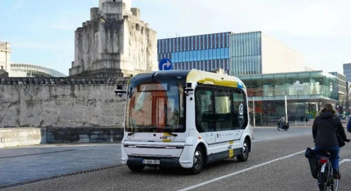 文远的无东说念主驾驶小巴在比利时载客
